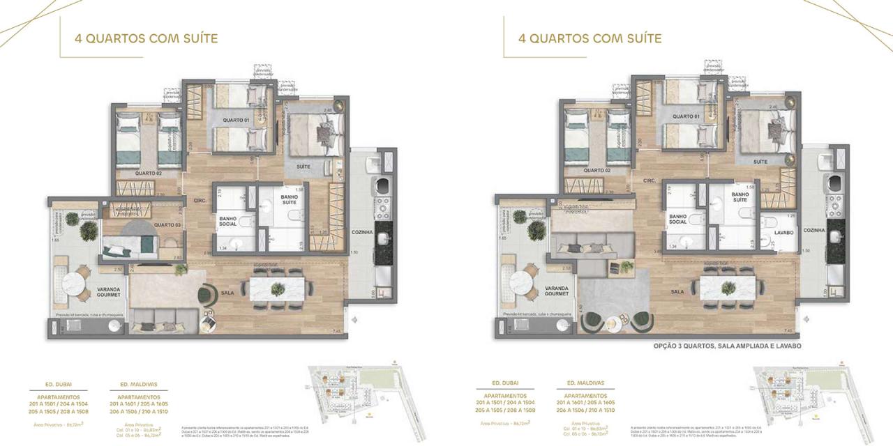 Os apartamentos do Only by Living são a personificação do conforto e da versatilidade. Com metragens que variam de 44 a 86 metros quadrados, as opções incluem 2 quartos sem suíte de 46 metros quadrados, 2 quartos com suíte de 52 metros quadrados, 3 quartos de 60 a 66 metros quadrados, e 4 quartos com suíte, closet integrado e varanda gourmet de 86 metros quadrados. Quase todas as unidades contam com pelo menos uma vaga de estacionamento, oferecendo praticidade aos moradores. Os diferenciais se destacam na distribuição do espaço, nos acabamentos de alta qualidade e na possibilidade de personalização, permitindo que você crie o lar dos seus sonhos. Investir em um apartamento do Only by Living é abraçar a excelência em moradia.