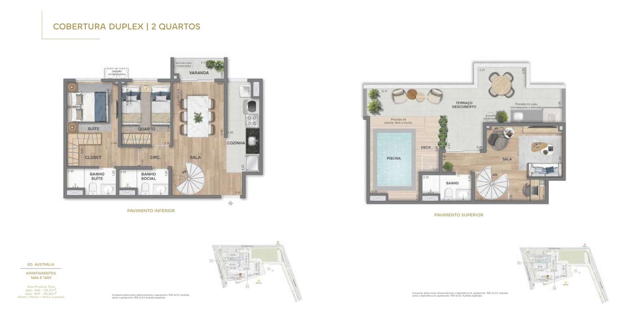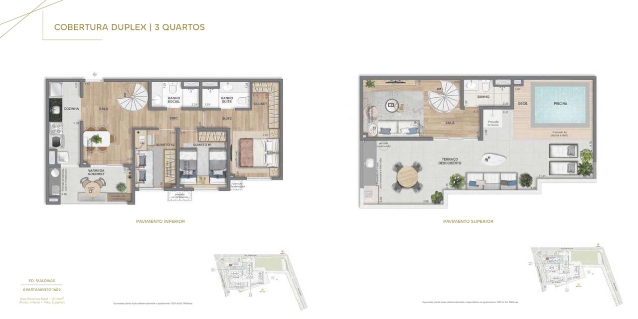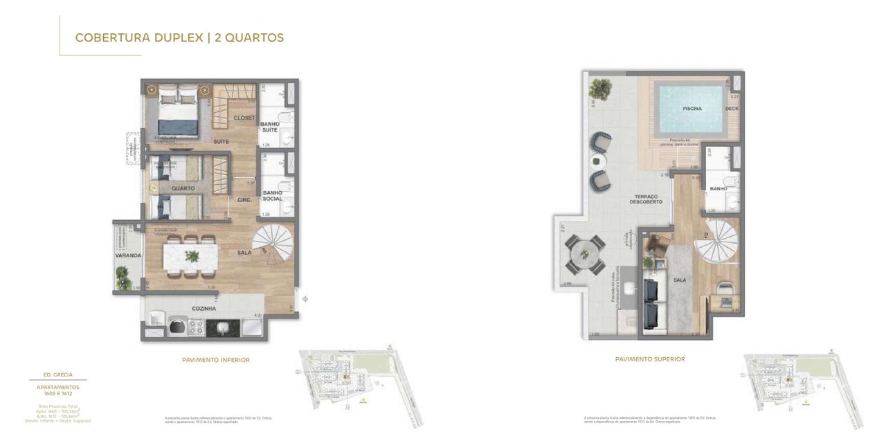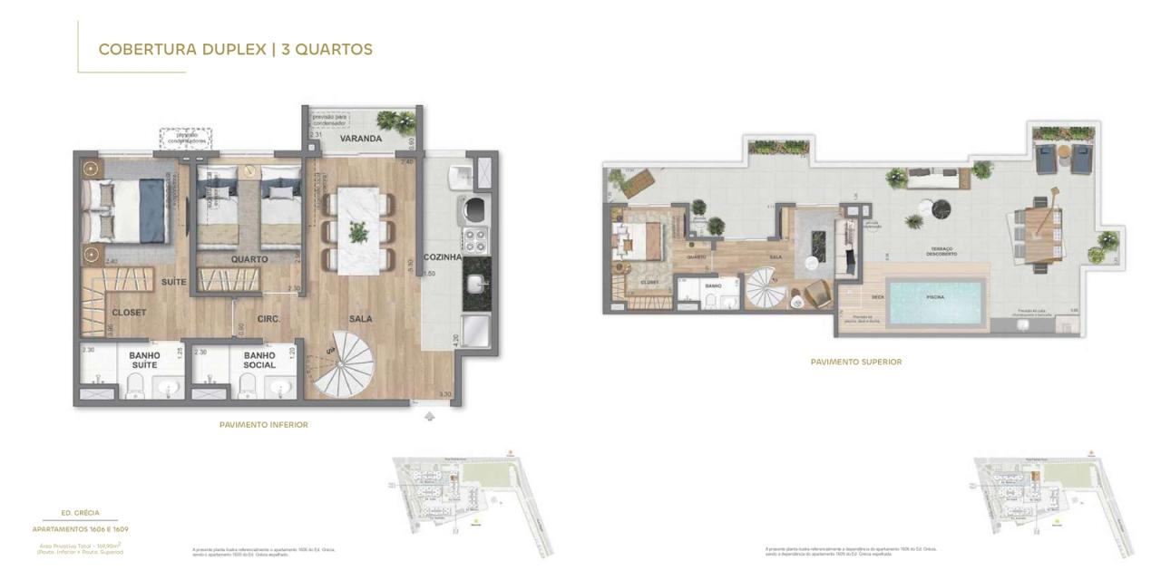 As coberturas duplex do Only by Living são verdadeiras joias arquitetônicas. Com metragens que variam de 93 a 182 metros quadrados, oferecem configurações que vão de 2 a 4 quartos, todas com suítes. A amplitude desses espaços proporciona uma sensação de luxo e conforto incomparáveis, destacando-se pelo planejamento inteligente e acabamentos de alta qualidade. Além disso, a possibilidade de personalização permite que você adapte o espaço de acordo com suas preferências, tornando cada unidade verdadeiramente única. Investir em uma cobertura duplex no Only by Living é uma oportunidade para desfrutar de uma vida sofisticada e exclusiva.